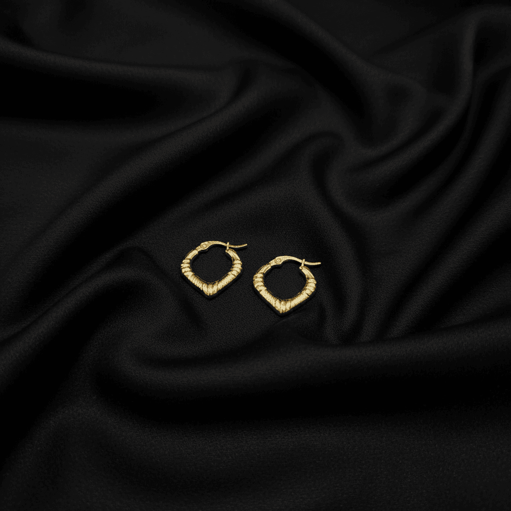 Heart-shaped hoops with a bold ridge texture and a polished gold shine. An anti-tarnish earring perfect for standout everyday style.