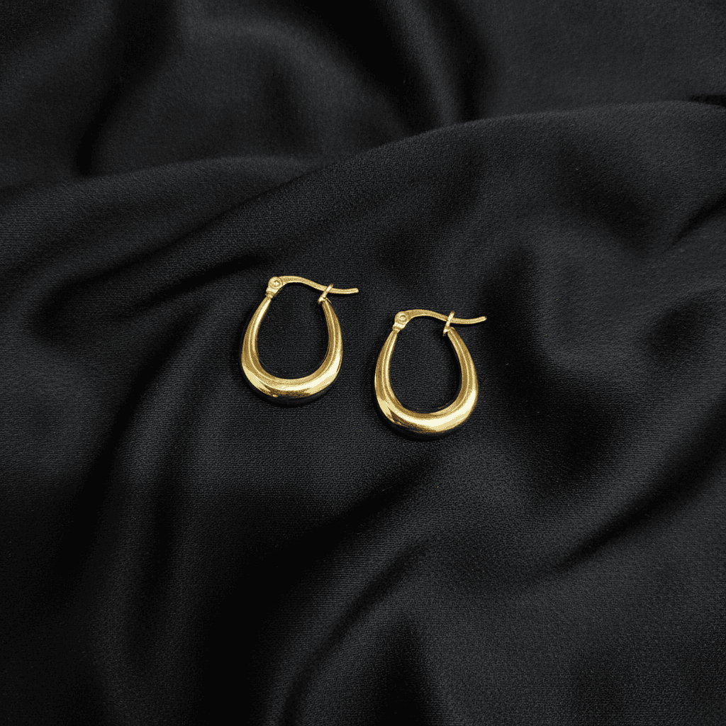 Sleek, golden oval hoops with a clean, polished finish. An anti-tarnish earring ideal for everyday style.