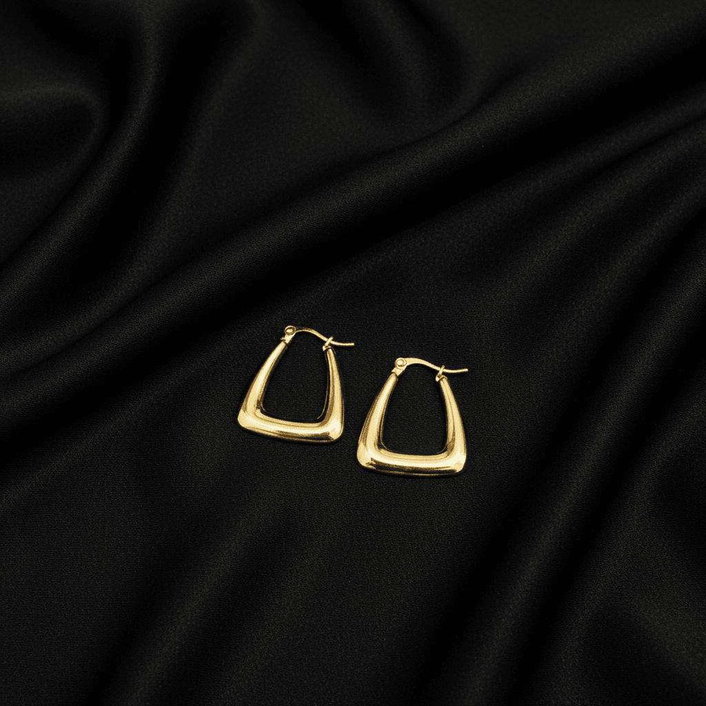Sharp, stylish hoops with a polished golden finish. An anti-tarnish earring that adds a modern edge to any look.