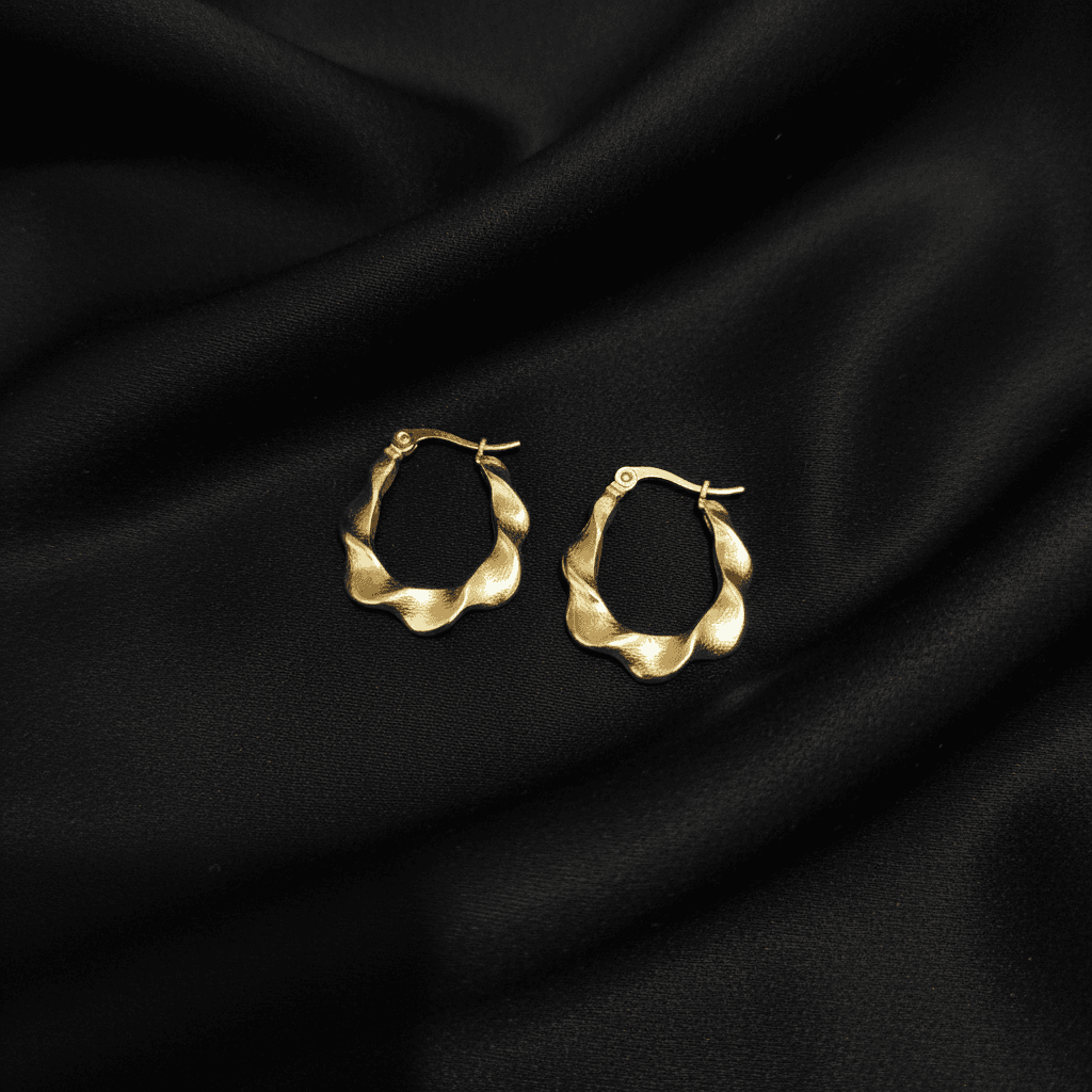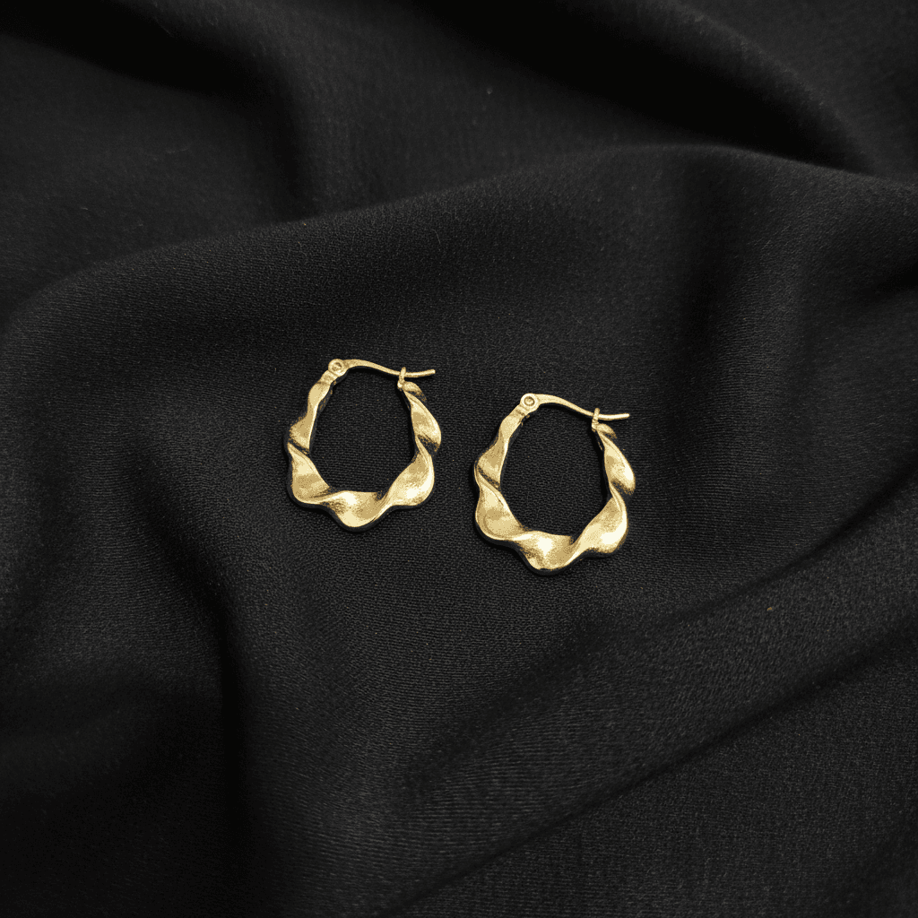 Unique wavy structured hoops with a bright golden shine for a bold, modern look.