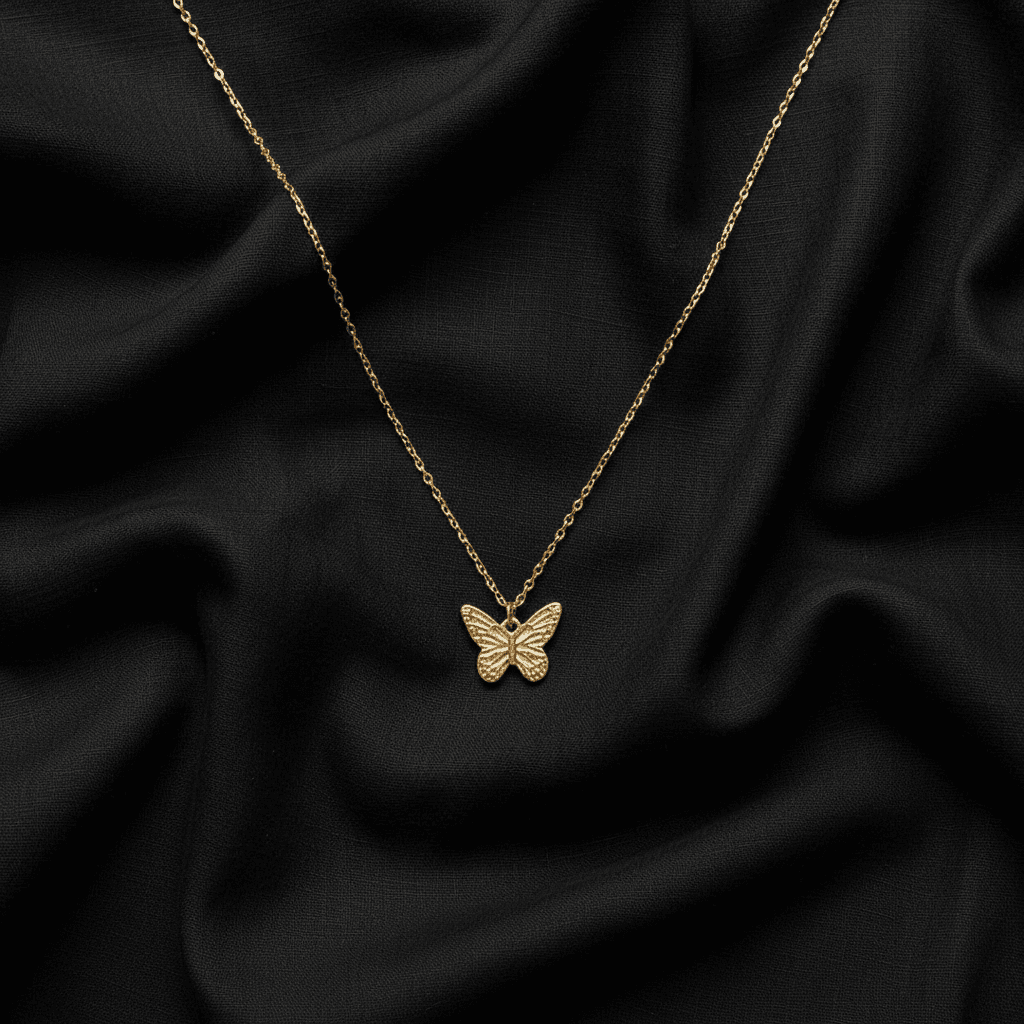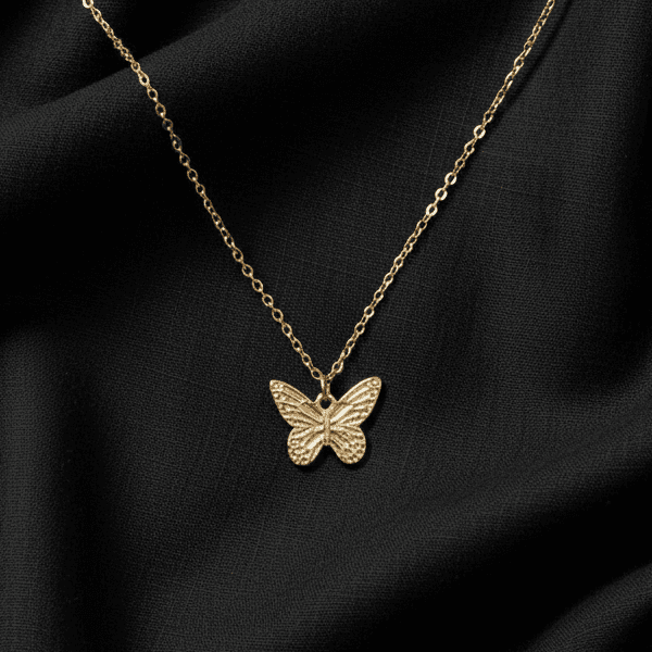 Delicate gold-tone chain featuring a finely detailed butterfly charm with a polished finish.