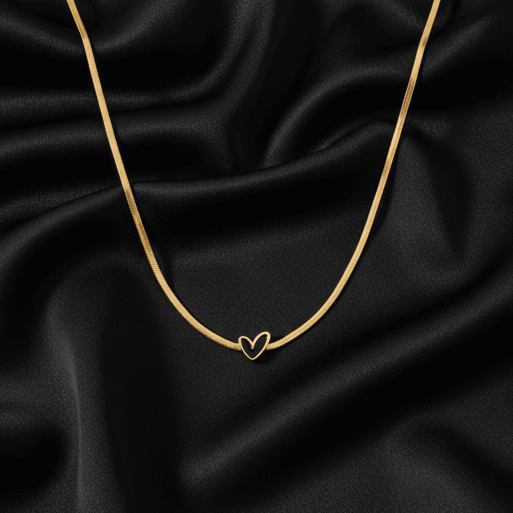 Minimal gold-tone chain with a softly contoured heart charm at the center.