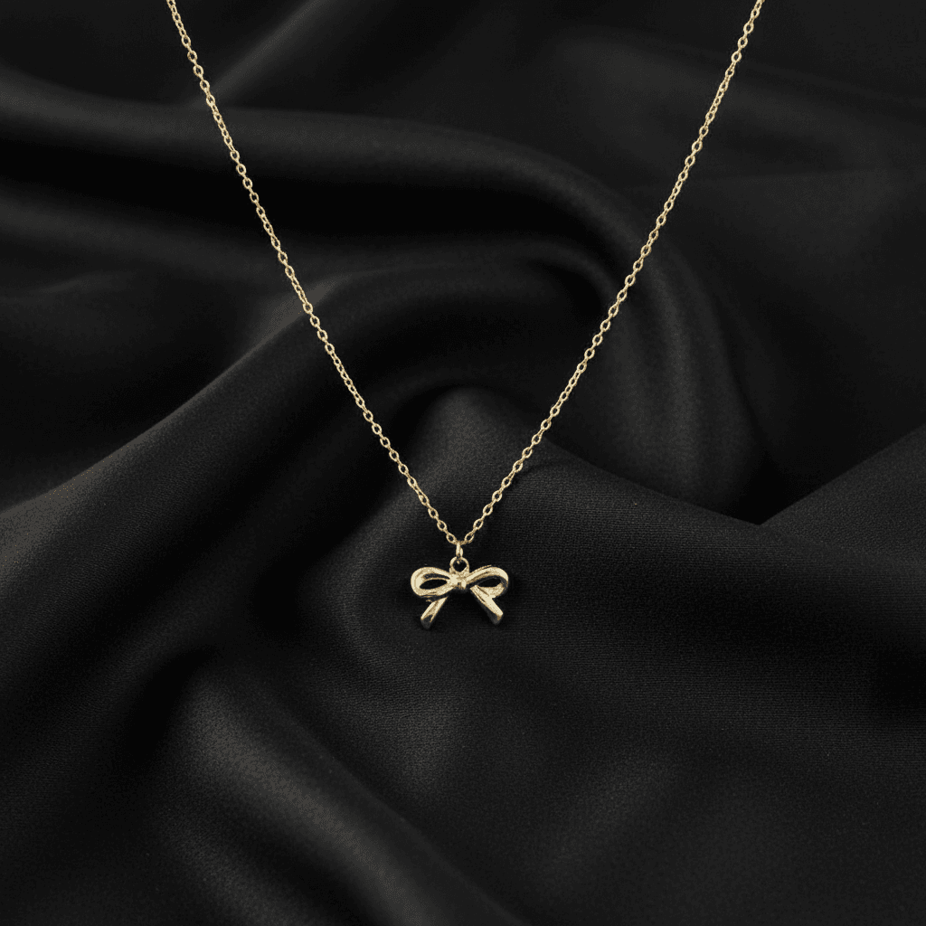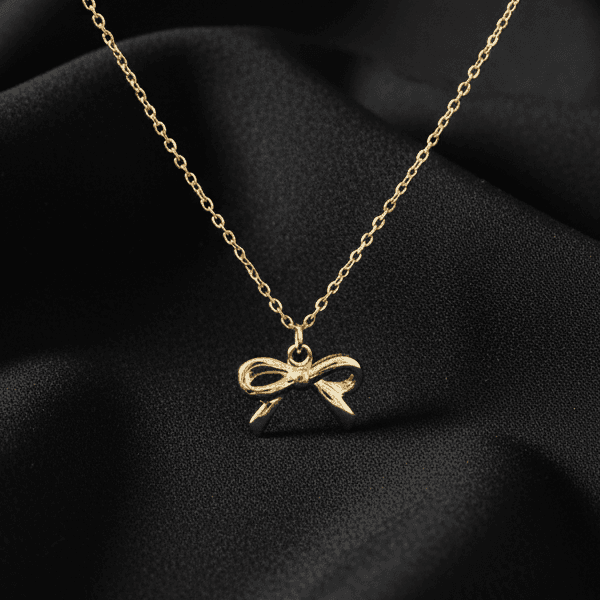 Delicate gold-tone chain featuring a minimal petite bow charm at the center.
